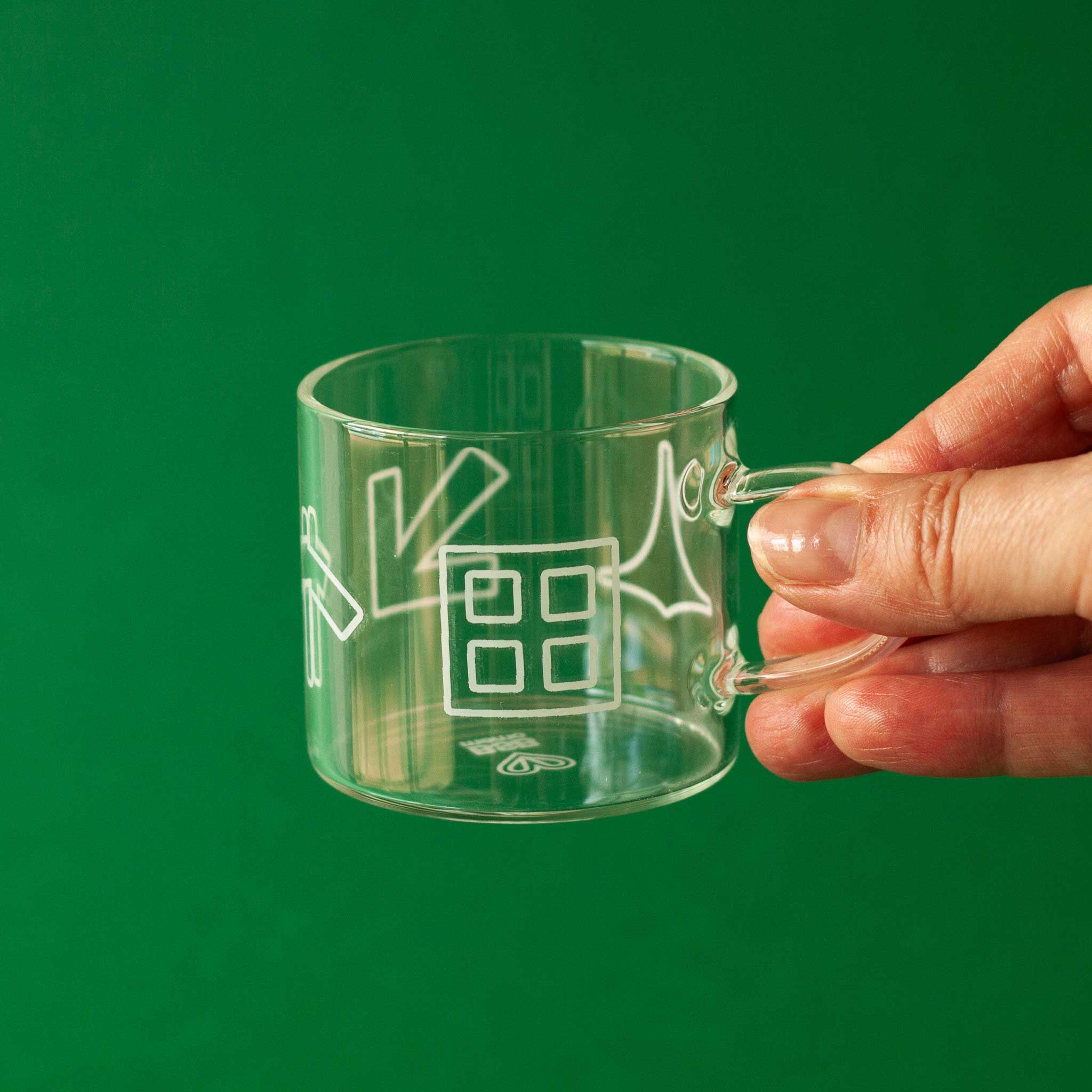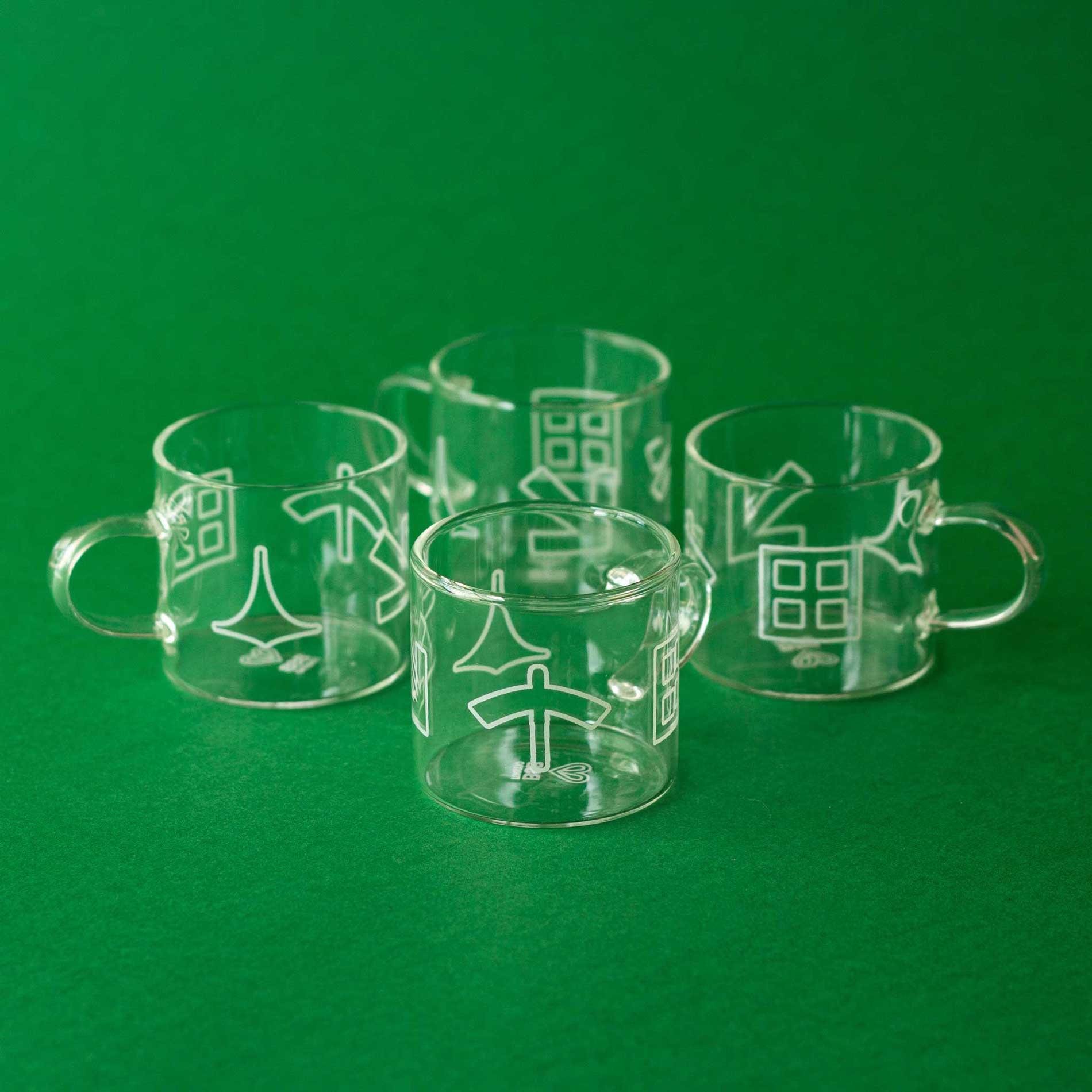 Uma seta, uma pitada de Alvorada, uma colher de cobogó e um punhado de plano pilotinho. Pronto, o café está servido! Vem quatro canequinhas no conjunto, para colocar o papo em dia. (4 canequinhas de 75 ml em vidro)