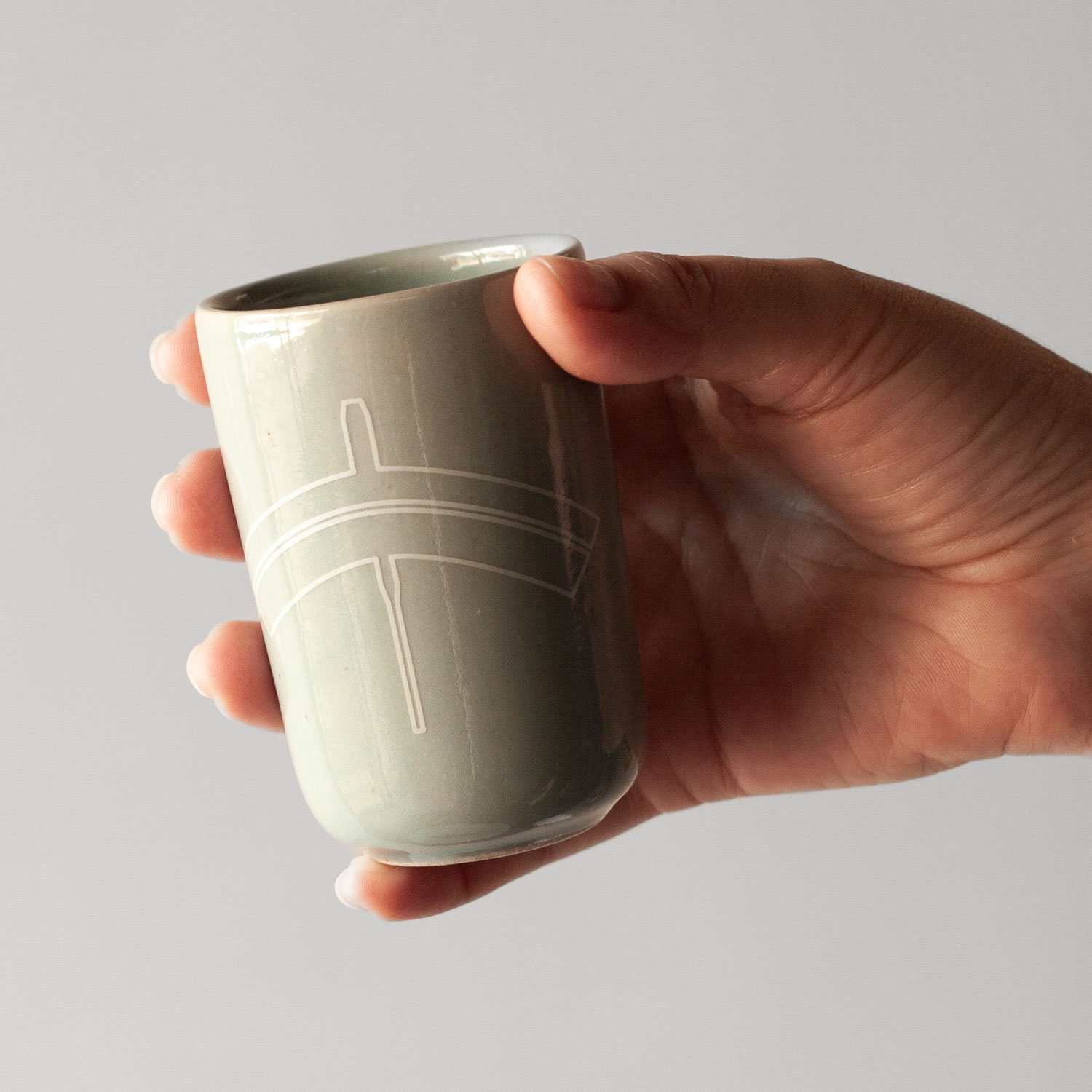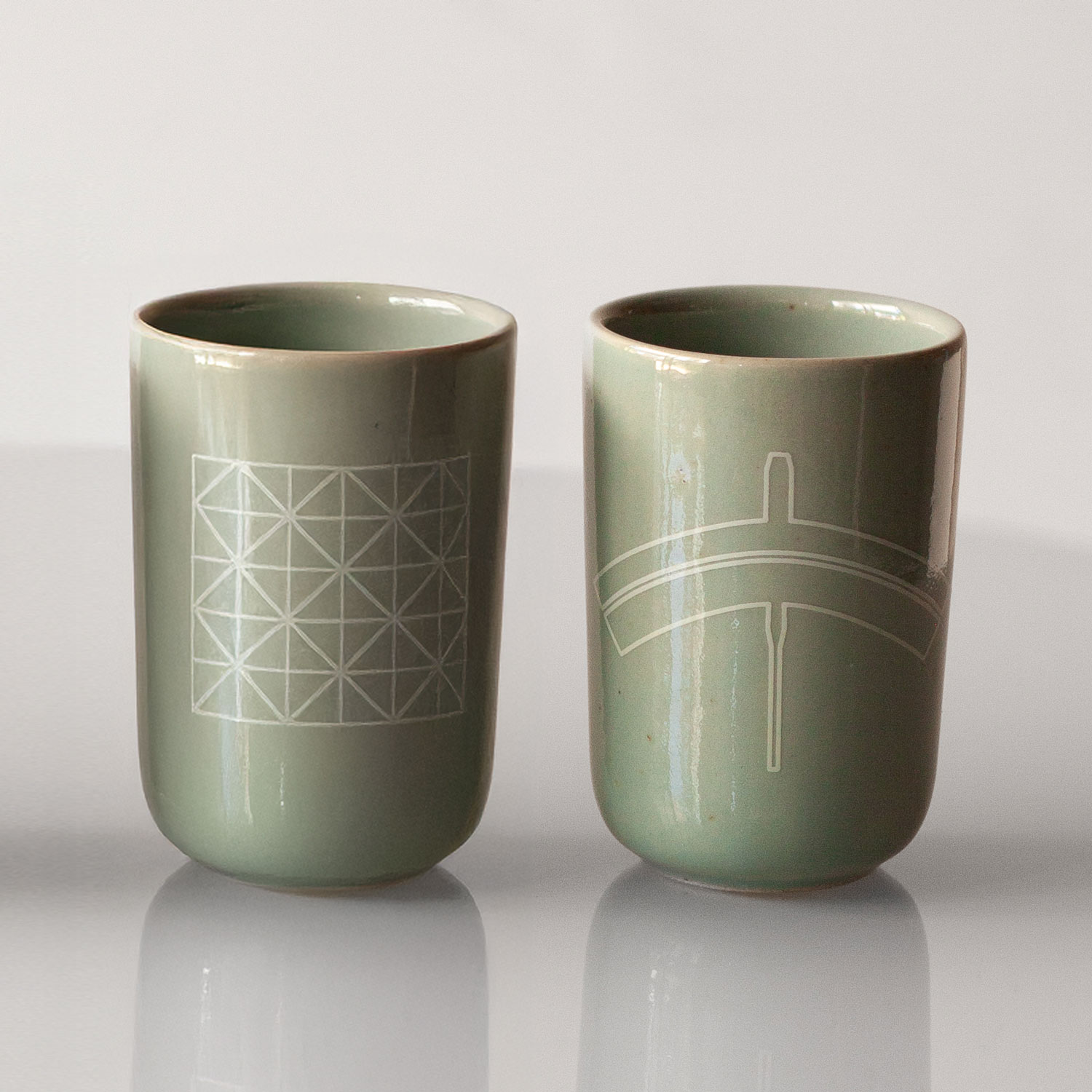 O encontro perfeito entre a tradição da cerâmica e a nova cidade, em dois desenhos para representar dois artistas que criaram Brasília. O traço de Lúcio Costa e a composição de Athos Bulcão. Conjunto com 2 copinhos de 110 ml cada.