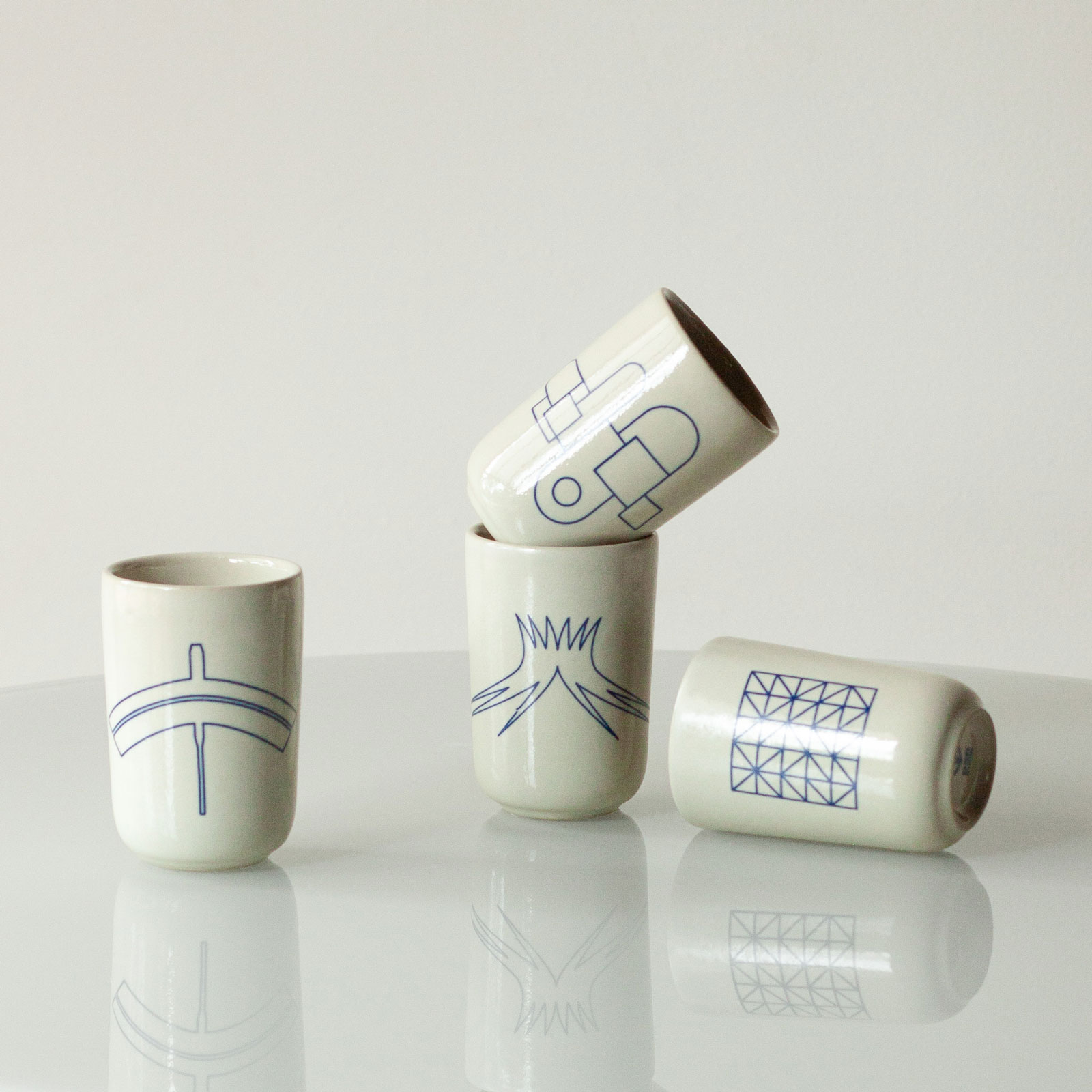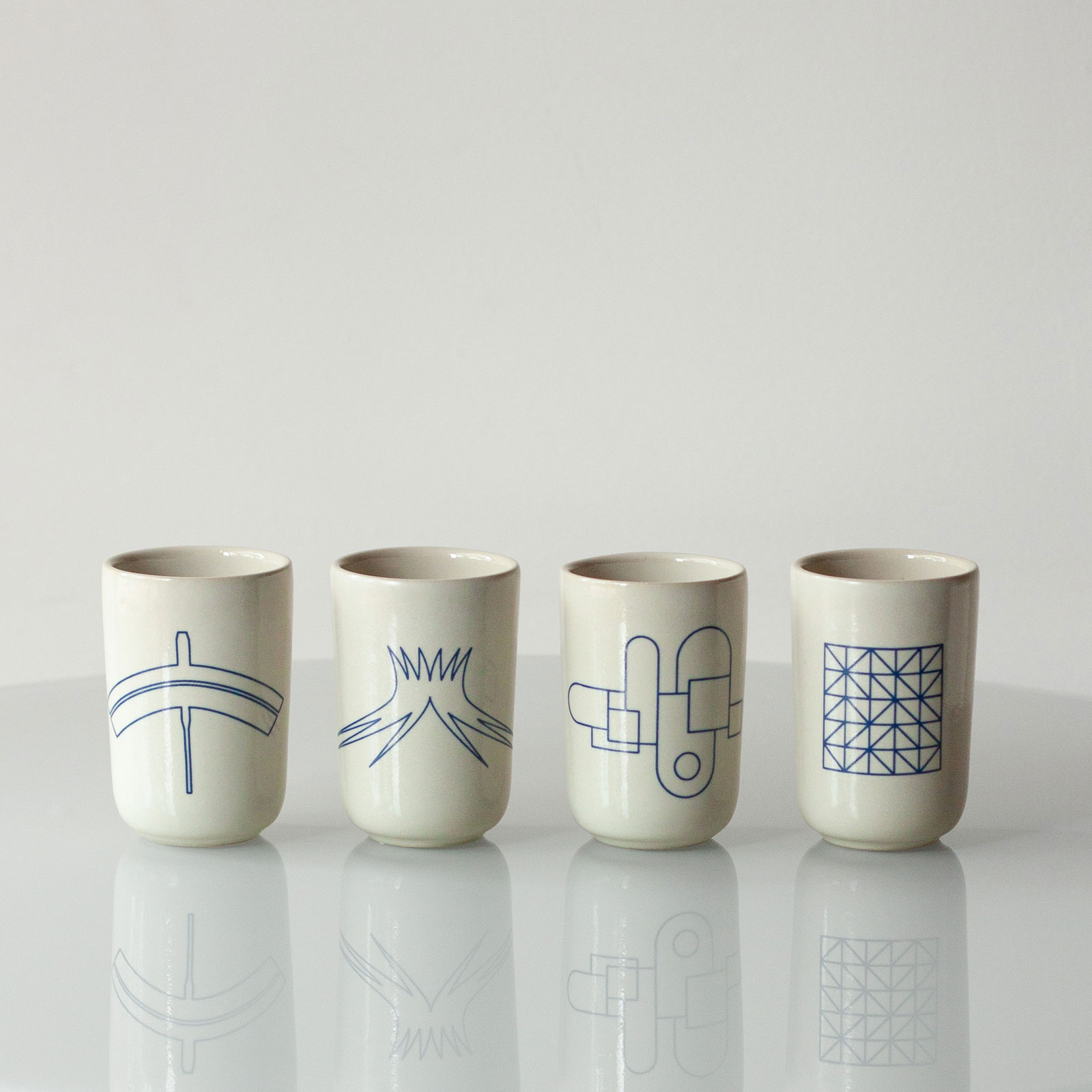 O encontro perfeito entre a tradição da cerâmica e a nova cidade, em quatro desenhos para representar quatro artistas que criaram Brasília. O traço de Lúcio Costa, as formas de Oscar Niemeyer, a composição de Athos Bulcão e a beleza de Burle Marx. Conjunto com 4 copinhos de 110ml cada.